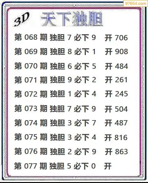 天齐网3d26年077期胆码图 胆:83