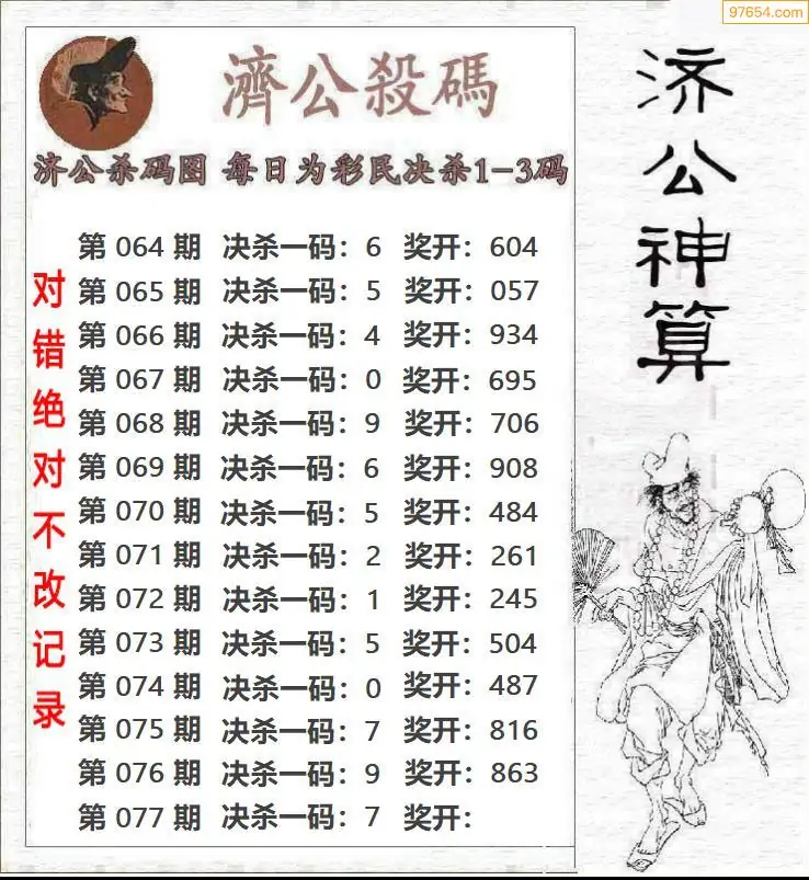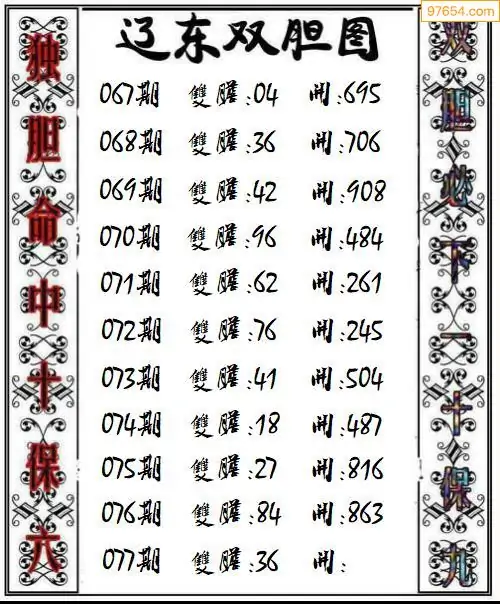 牛彩网077期福彩胆码图汇总 胆:06