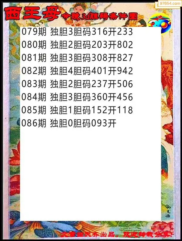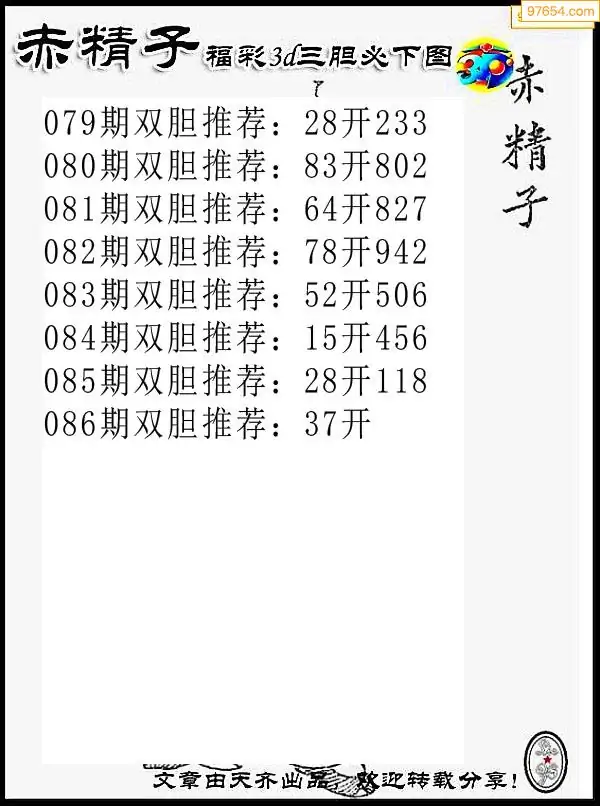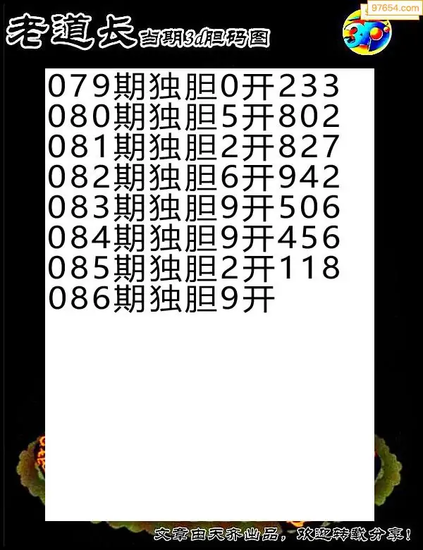 086期97654本站收集胆码出号预测