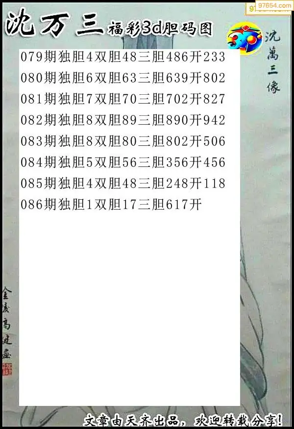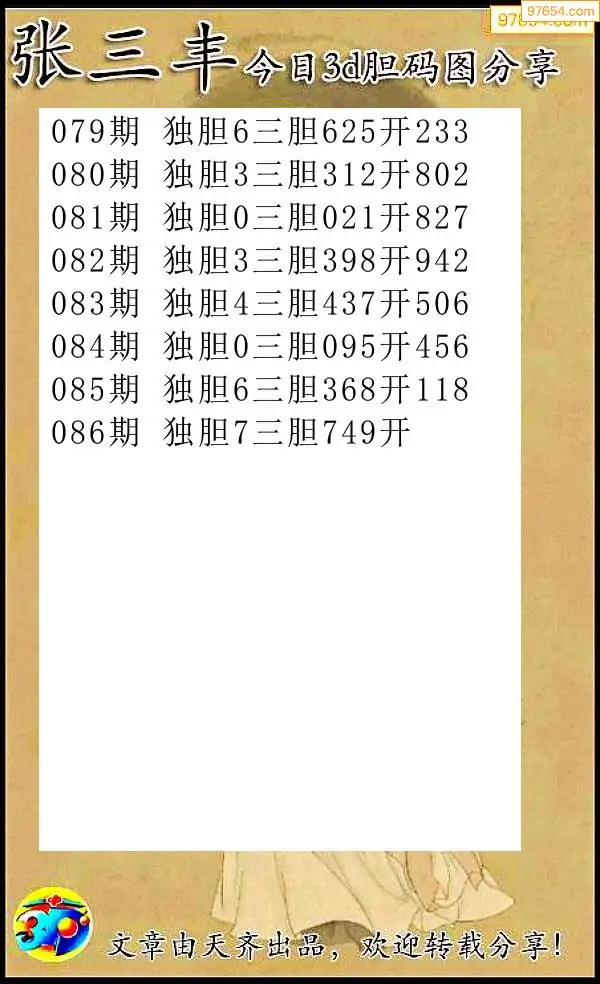 2026086期彩彩网3d原创图迷搜集(天中整理)