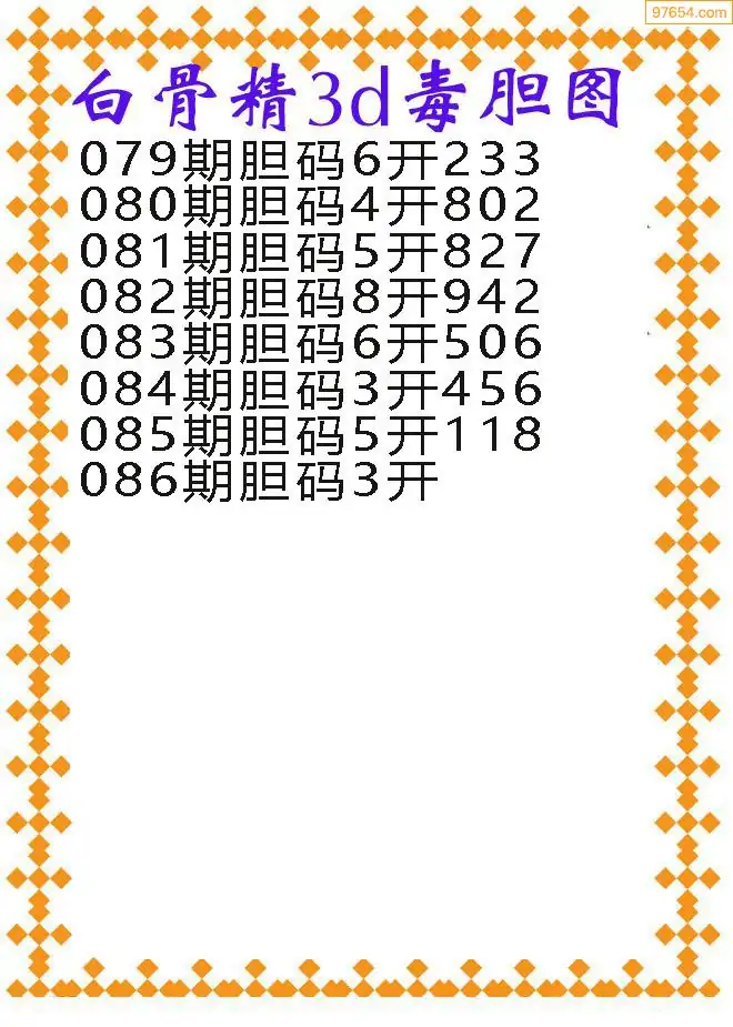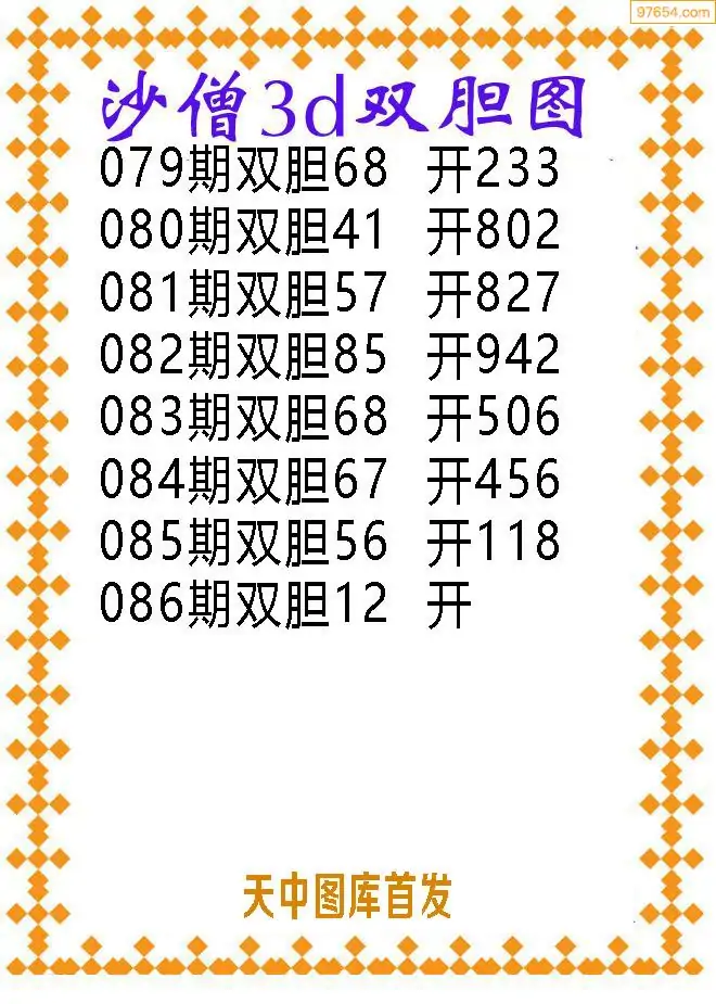 天齐网3d26年086期胆码图 胆:67