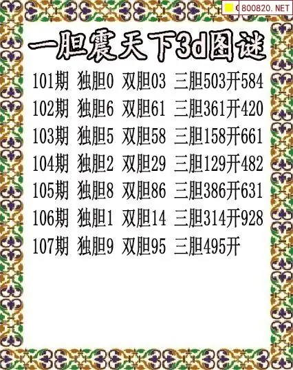 2026107期彩彩网3d原创图迷搜集(天中整理)