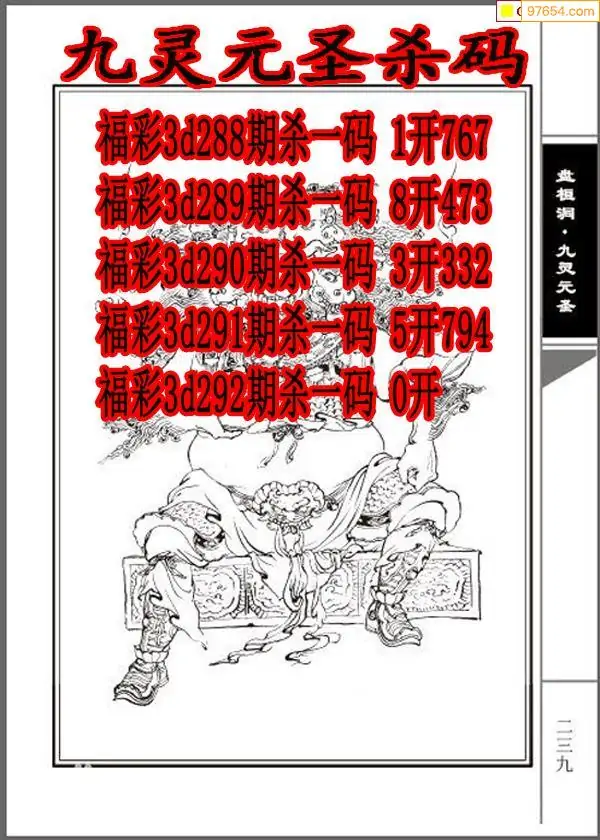 牛彩网292期福彩杀码图汇总 杀:27