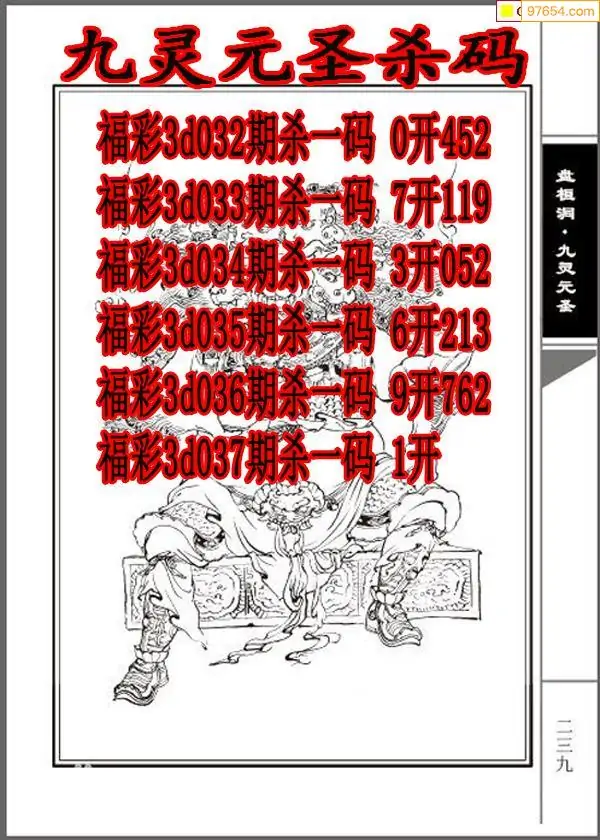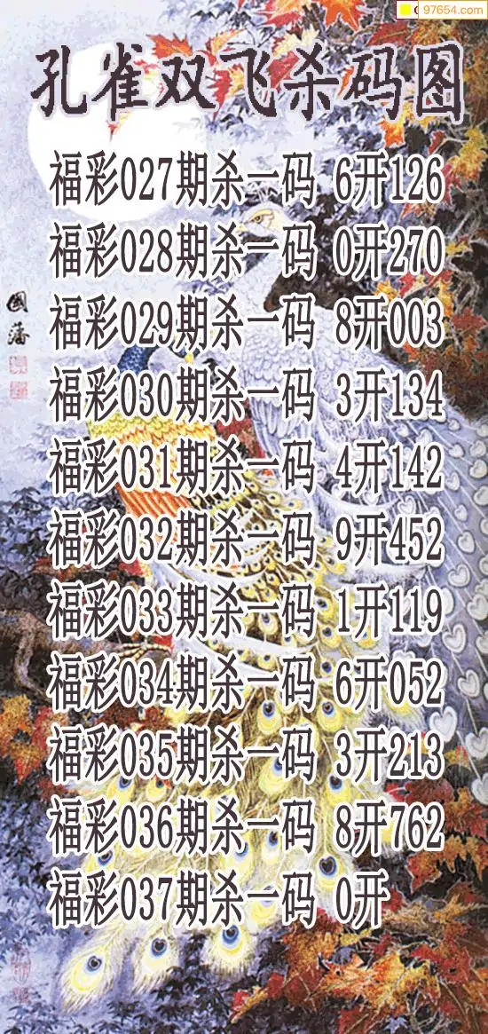 037期97654本站收集杀码出号预测
