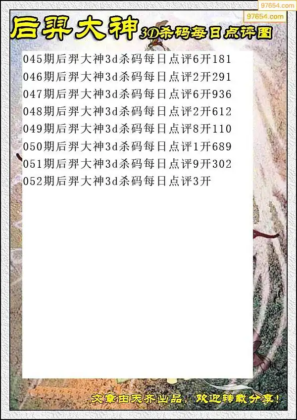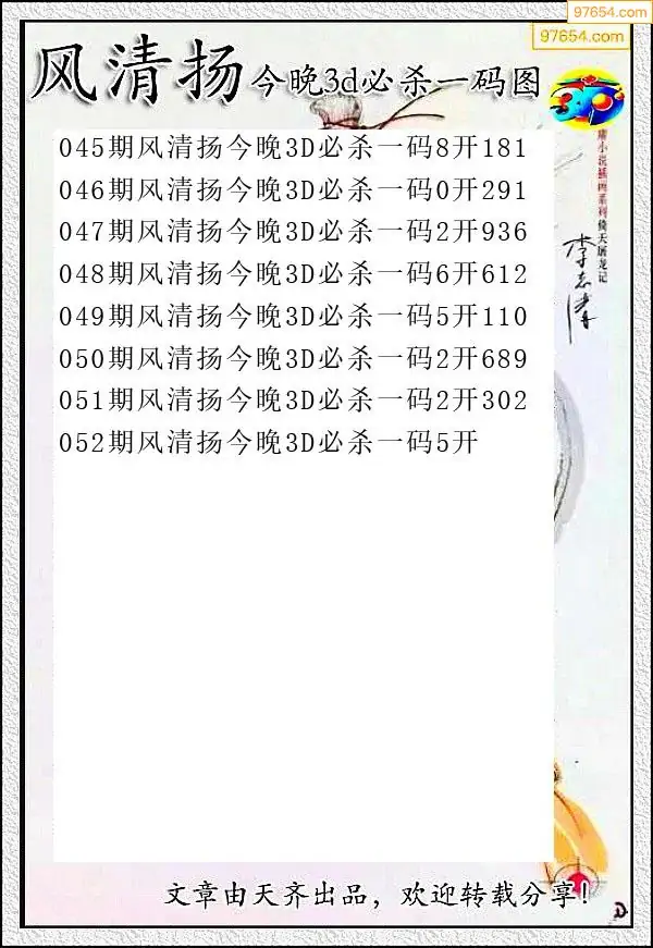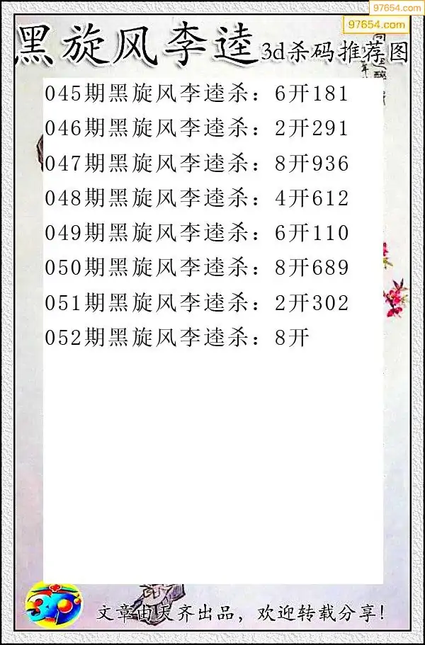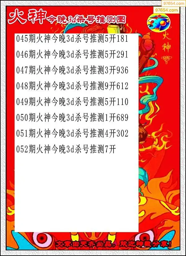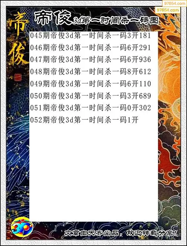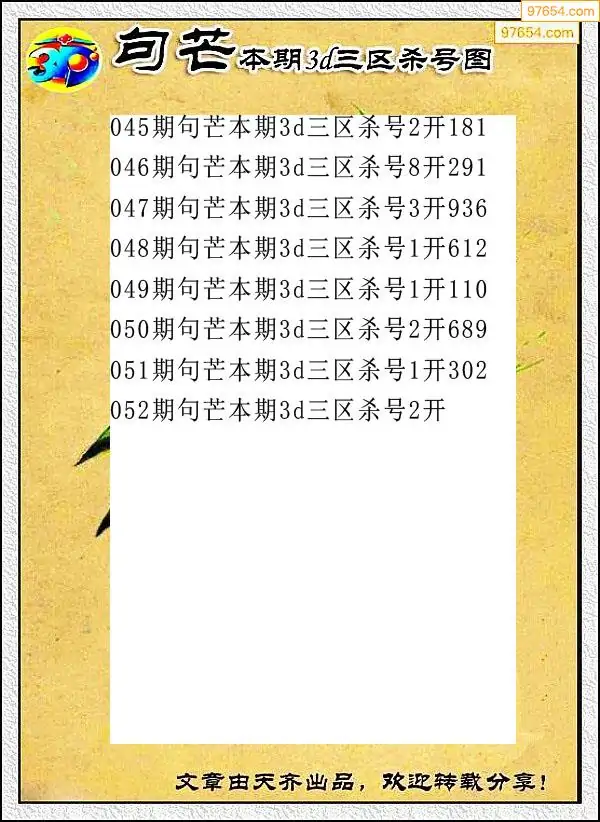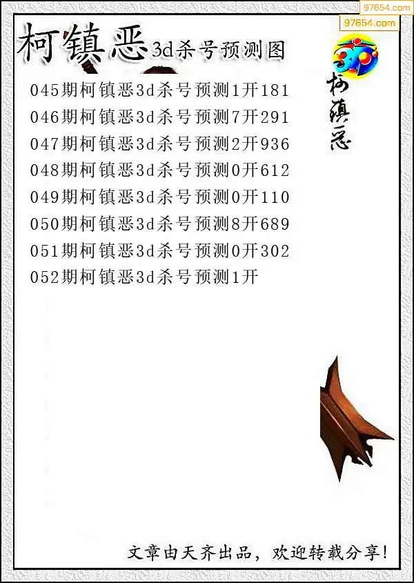 052期97654本站收集杀码出号预测