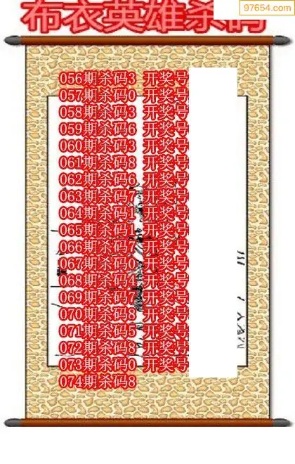 074期97654本站收集杀码出号预测